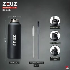ZEUZ® Premium RVS Thermosfles & Drinkfles – Waterfles Met Rietje – BPA Vrij – 700 Ml – Mat Zwart