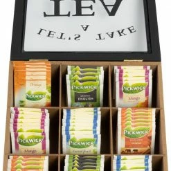 Merkloos Theekist – Bruin – Hout 9-Vaks – Glazen Deksel – Theedoos – Tea Break