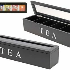 Merkloos Houten Theedoos 6-vaks 21 Cm – Theedozen/theekisten Van Hout 21 Cm