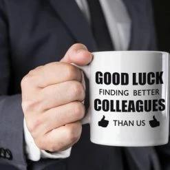 Bellatio Decorations Koffiemok/theebeker – Zwart-wit – Keramiek – Bedankt Collega – 300 Ml