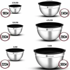 Rednas 6-delige XXL Mengkommen Set – Beslagkommen – Mengkom Met Deksel – Beslagkom – Mengkommen Voor Beslag/Salade – RVS