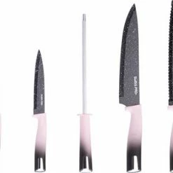 Swiss Pro+ – SP-KSBLK-S – 8-delige Keukenmessenset Met Standaard – Keramisch Messenset – RVS | Inclusief Messenblok – Pink