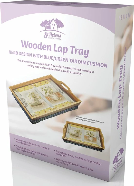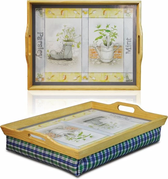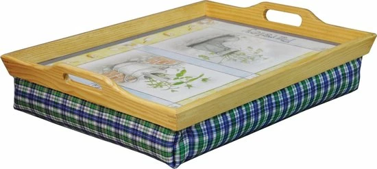 Deze aantrekkelijke en functionele dienblad maakt ontbijt op bed, lezen, schrijven en knutselen gemakkelijk en comfortabel. Het dienblad heeft een ingebouwde kussen onder bovenste blad, afgewerkt in een aantrekkelijke tartan stof. Zo zal deze comfortabel rusten op je benen terwijl je ligt of zit. Het dienblad heeft een aangenaam ontwerp dat past bij zowel moderne als traditionele huizen en is eenvoudig te reinigen. Tevens is dit dienblad voorzien van ingebouwde handvatten om makkelijk te tillen.