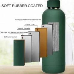 De flessen zijn gemaakt van 18/304 stainless steal met een zachte rubberen coating