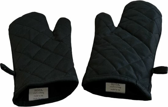 Met deze Benza ovenwanten hoef je je geen zorgen te maken aan het branden van je handen aan de oven of een hete pan. Deze ovenwanten zijn uitgevoerd in het zwart en is geschikt voor dagelijks gebruik, Met de ophanglus kun je ze makkelijk ophangen.