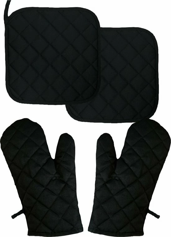 U ontvangt 2 pannenlappen en 2 ovenwanten.