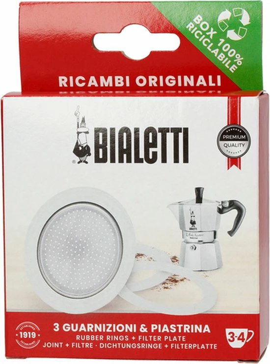 Bialetti Moka Aluminium Filterplaatje + 3 Rubber Ringen – 3 en 4 kops