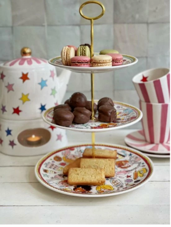 De collectie Even Bijkletsen is nog steeds de grote favoriet van vele Blond-liefhebbers. Deze collectie is daarom uitgebreid met een nieuwe etagère Tea & Cookies. De etagère is ideaal geschikt voor het serveren van de lekkerste hapjes en staat ook nog eens erg leuk op tafel. Voorzien van 3 lagen met 3 vrolijke borden in de stijl van Even Bijkletsen. De borden hebben verschillende gekleurde randen. Het bovenste bord mint, het middelste bord roze en het onderste bord een rode rand. Op de etagère staan de herkenbare, vrolijke illustraties met teksten zoals ‘Life is sweet’ en ‘You bake my day’ .De etagère heeft een vrolijke verpakking en is ook erg leuk om cadeau te doen!