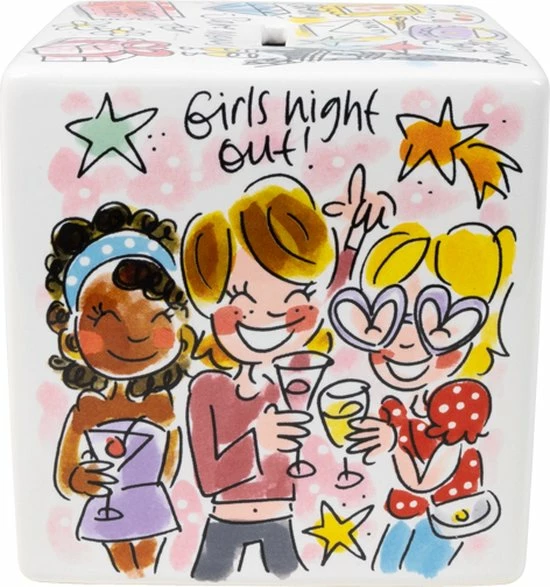 De collectie Even Bijkletsen is nog steeds de grote favoriet van vele Blond-liefhebbers. Nieuw in deze collectie is de vierkante spaarpot. Spaar nu voor een dagje shopje, een avondje uit of je droomhuis :-). Met de vrolijke tekeningen en quotes op de spaarpot, wordt sparen geen probleem!