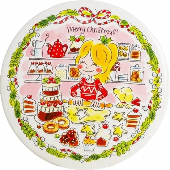 Kom in de gezellige winterse kerstsfeer met dit kerst taartplateau. Dit taartplateau maakt de tafel helemaal compleet tijdens kerst. Het plateau heeft als rand een groene kerstkrans met een rode strik, deze kerstkrans komt op de andere kerst producten ook terug. Dus dit plateau is leuk om te combineren met de andere Blond kerst items, zoals bijv. de kerst schaal, of de bekers. Op het plateau staan allerlei verschillende Blond tekeningen, die je helemaal meenemen in de winterse kerstsfeer.