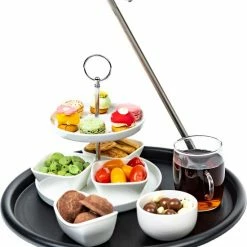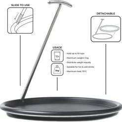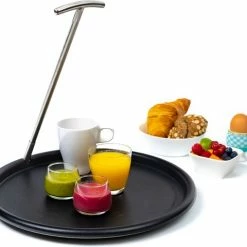 Zeer handig dienblad. Altijd รฉรฉn hand vrij. Uiterst handig bij het traplopen en met รฉรฉn hand de deur bedienen. Dus ook voor een heerlijk ontbijt op bed. Of bij een tuin barbecue. Of als keukenaccessoire.