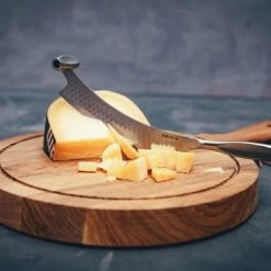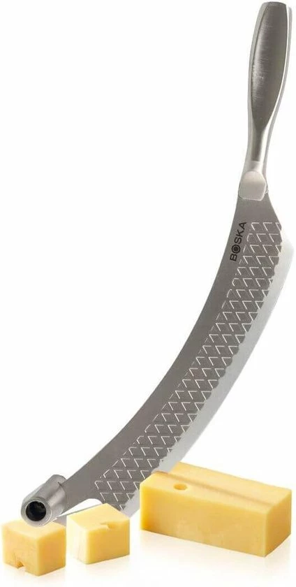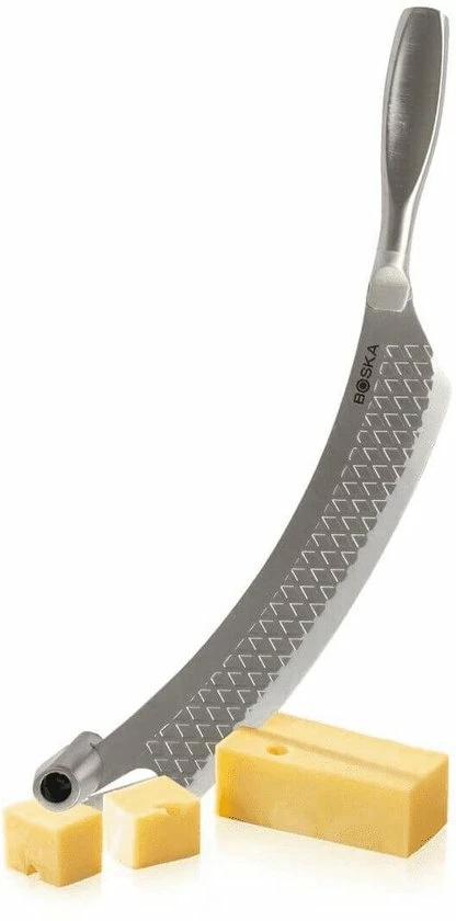 Dit handige kaasmes is geschikt voor het snijden van half harde en harde kaas zoals oude Hollandse kaas en cheddar. Door de wiegende beweging ga je eenvoudig door harde kaaskorsten heen, maar snij je ook kaarsrecht.