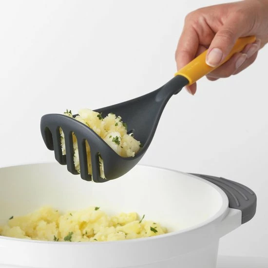 Laat je niet overweldigen door een overvloed aan keukengerei. Haal multitaskers in huis zoals deze Brabantia Tasty+ pureestamper plus lepel. Een keukenhulpje voor zowel fijnstampen als serveren. Verpletterend.