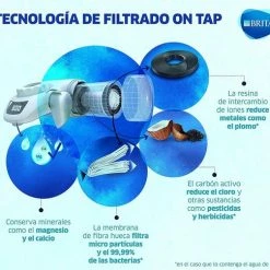 Het actiefkoolfilter vermindert stoffen die de smaak van water veranderen, de ionenwisselaar vermindert metalen en het holle-vezelmembraan filtert deeltjes en 99,9% van de bacteriën