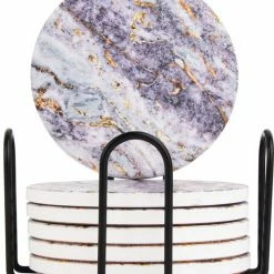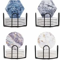 - Met metalen houder – Om de onderzetters op een stijlvolle manier op te kunnen bergen wordt de set geleverd met een zwarte metalen houder.