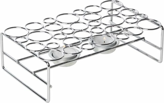 Heb je een diner waarbij je eten warm zou willen houden? Dan is deze schotelverwarmer precies wat je zoekt!De schotelverwarmer is gemaakt van metaal, met als ‘print’ rondjes op de bovenzijde. De schotels houd je warm met 2 waxinelichtjes die je in de houders kunt plaatsen.