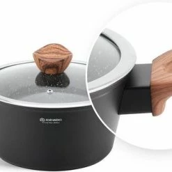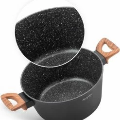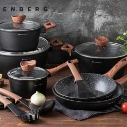 Deze prachtige pannenset van Edënbërg wordt geproduceerd onder de strengste Duitse normen en met het beste aluminium. De bodem is bedekt met maar liefst 3 lagen marmer met een mooie zwarte binnenkant die niet verkleurd. Dankzij de dikke bodem zijn de pannen zeer duurzaam en wordt het eten gelijkmatig verwarmd. De pannen kunnen worden gebruik op een kookplaat en ook op een fornuis met inductie.