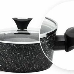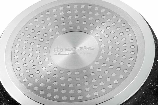 Deze prachtige pannenset van Edënbërg wordt geproduceerd onder de strengste Duitse normen en met het beste aluminium. De bodem is bedekt met maar liefst 3 lagen marmer met een mooie zwarte binnenkant die niet verkleurd. Dankzij de dikke bodem zijn de pannen zeer duurzaam en wordt het eten gelijkmatig verwarmd. De pannen kunnen worden gebruik op een kookplaat en ook op een fornuis met inductie.