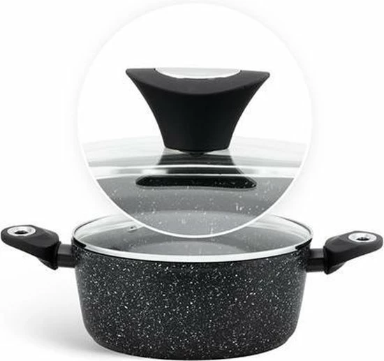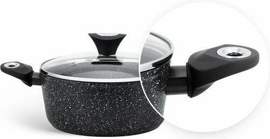 De 3 lagen marmer bodem is de beste anti-aanbaklaag die je je kunt wensen. Het materiaal is tot wel 7 x sterker dan een traditionele anti-aanbaklaag en eten kan niet aankoeken. Je kunt daardoor zonder of met een klein beetje olie of boter gezonde maar ook lekkere gerechten op tafel zetten. Darnaast zijn de pannen door de marmeren lagen veel makkelijker met de hand of in de vaatwasser schoon te maken. De marmeren lagen behouden hun klaar, zijn minder kwetsbaar, distribueren warmte perfect en bevatten absoluut GÉÉN gifitige stoffen. Wat wilt de professionele of hobby kok nog meer?