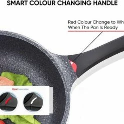 – HANDIG TE GEBRUIKEN – De ergonomische handgreep is van bakeliet en is uitgerust met een thermische sensor die inschakelt wanneer de pan het optimale verwarmingsniveau heeft bereikt en kan worden gebruikt om te koken. we hebben aan weerszijden van de koekenpan uitloop toegevoegd om gemakkelijk je favoriete soep en curry’s in te schenken. Perfecte maat koekenpan 28cm.
