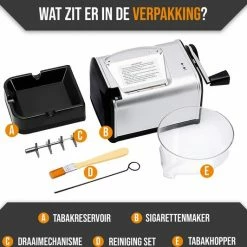 Door de compacte uitvoering en het moderne design is de sigarettenmaker makkelijk in gebruik en eenvoudig mee te nemen. Uitermate schikt voor thuisgebruik en op reis. Hierdoor produceert u binnen enkele minuten een vol pakje sigaretten. Dit is de duurzame oplossing om geld te besparen om vervolgens dit besteden aan overige benodigdheden.