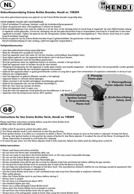 | Categorieën | Koken, &, Tafelen, Keukengerei, Creme, Brulee, branders, Overig, keukengerei |