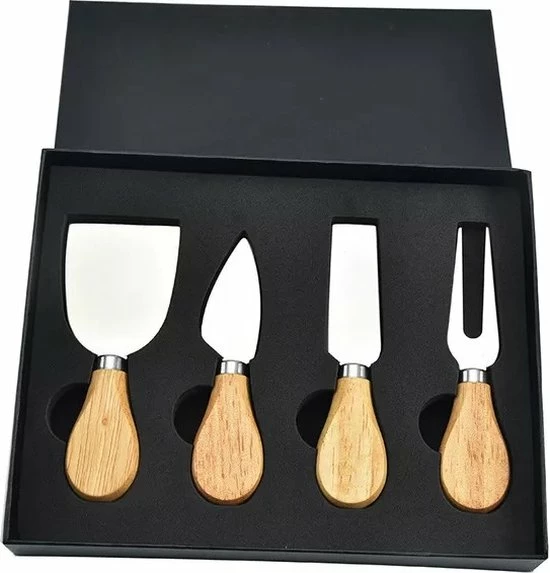 Heppie Kitchen Kaasmessen – Set Van 4 Stuks – Duurzaam – Bamboe – Roestvrij Staal – Cadeau – Tafelen