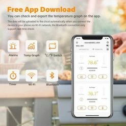 Gratis app-download, de tijdelijke gegevens worden automatisch naar de cloud geüpload wanneer u het bbq thermometer via Wi-Fi met uw telefoon verbindt.U kunt de temperatuurgrafiek exporteren.