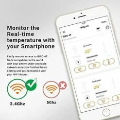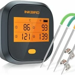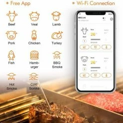 De Inkbird IBBQ-4T is een ‘draadloze thermometer’. Dat betekent dat de Inkbird de temperatuur van je gerecht via WiFi doorstuurt naar je app op je telefoon. In de app zijn 12 verschillende gerechten voorgeprogrammeerd. Het is ook mogelijk om je eigen gewenste temperatuur en/of een tijd instellen. In de app kun je de temperatuur van je gerecht zien en het verloop staat in een duidelijke grafiek.