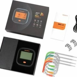 De Inkbird IBBQ-4T kun je koppelen met maximaal 4 probes. Zo kun je bijvoorbeeld tegelijkertijd het dikkere en het dunnere stuk van je vlees in de gaten houden en/of verschillen gerechten die je gelijktijdig op de barbecue bereidt. De magnetische behuizing van de thermometer kun je makkelijk aan het onderstel van je barbecue ‘plakken’.