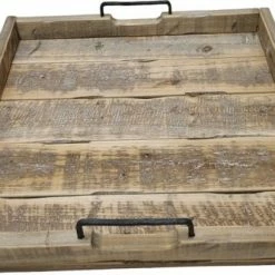 Het dienblad is gemaakt van dennenhout, en de handvaten zijn van metaal en hand gesmeed. Dit samen geeft een landelijke en ruige look. Naast dat het dienblad dus harstikke handig is, is het een echte toevoeging voor ieder huishouden. Leuk voor het plaatsen op tafel, met wat kaarsen erop of andere decoratie. Kortom is dit dienblad harstikke multifunctioneel! Ook is het dienblad origineel om als cadeau te geven.