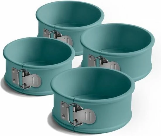 Een set van 4 ronde springvormpjes met een diameter van 10cm en een hoogte van 4cm. Dit formaat maakt ze ideaal om er leuke taartjes mee te maken welke je later kan decoreren. De super gladde zijkanten zorgen ervoor dat er geen indrukken in je cake komen.