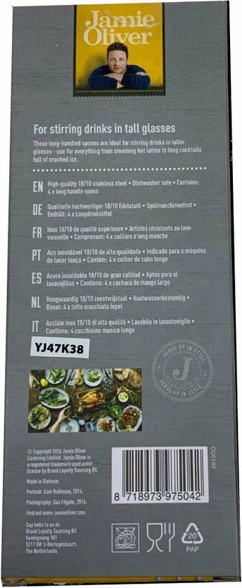Jamie Oliver- Latte Macchiato Lepels / Lange Theelepels – 4 Stuks