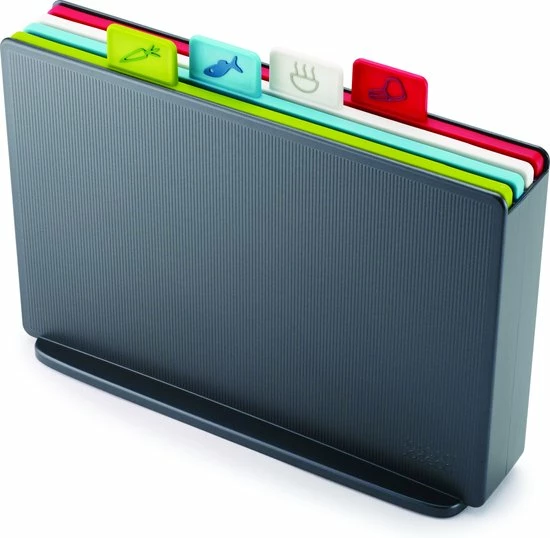 Joseph Joseph Index Snijplankenset – Incl. Houder – 30 X 20 Cm – 4 Stuks – Graphite
