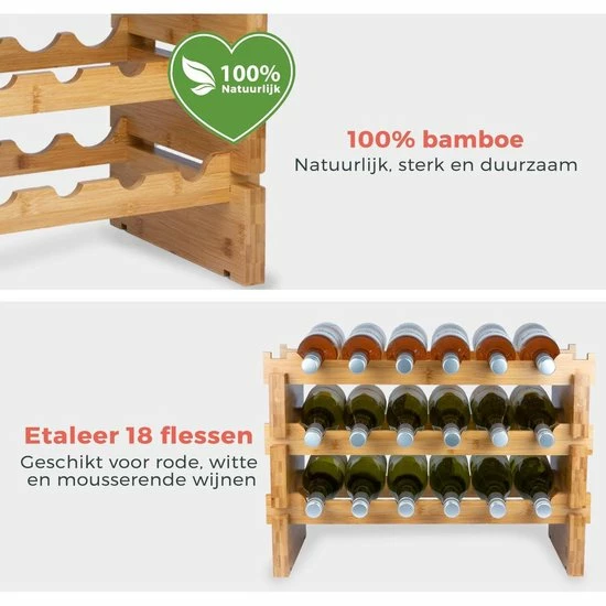 Bamboe wijnrek voor 18 flessen