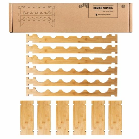 Met het KitchenBrothers wijnrek kun je jouw favoriete wijncollectie in een stevige constructie plaatsen. Met een eenvoudig en natuurlijke ontwerp, wordt elke wijnfles horizontaal opgeslagen om ervoor te zorgen dat zowel de wijn als de luchtbellen in contact blijven met de kurk, dit komt ten goede van de kwaliteit van de wijn. Zet het rek in de keuken, in je wijnkelder, de voorraadkast of geef dit leuke, bamboe wijnrek een prominente plek in de woonkamer!