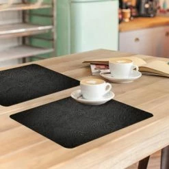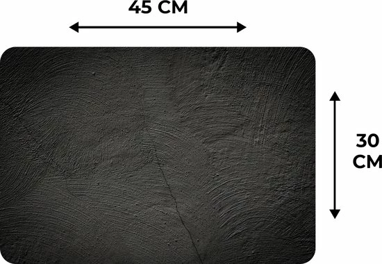 KitchenYeah Placemat – Placemats Kunststof – Beton – Zwart – Industrieel – 45×30 Cm – 6 Stuks – Hittebestendig – Anti-Slip – Onderlegger – Afneembaar