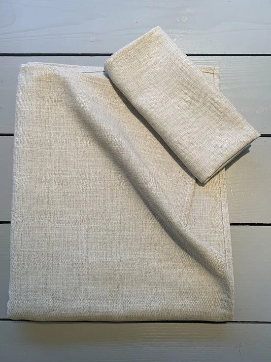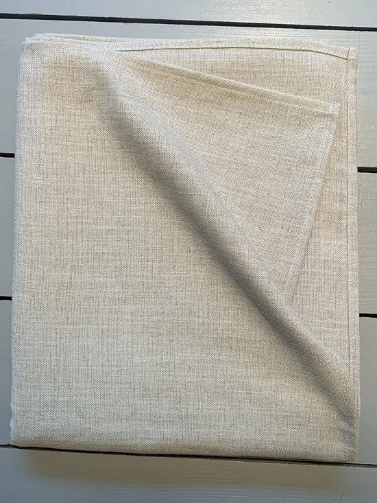 Dit tafellaken meet 145 cm op 250 cm. Het bestaat voor 47% uit linnen en 53% uit polyester.