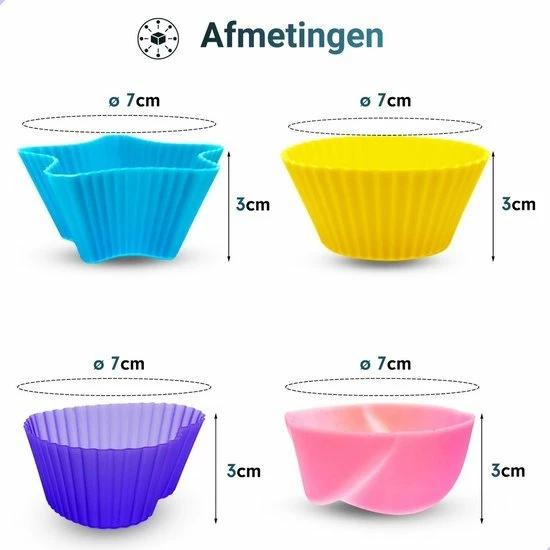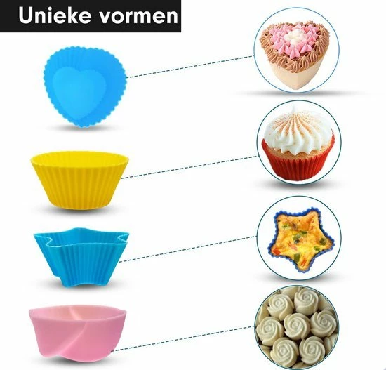 Bak de allerlekkerste cupcakes in de allermooiste vormen met deze siliconen cupcake bakvormpjes set.