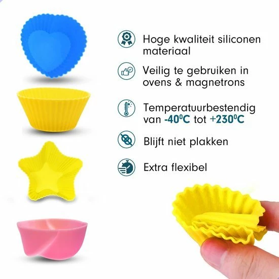 โ Druk gemakkelijk de cupcakes uit de vormpjes door het flexibele siliconen materiaal.