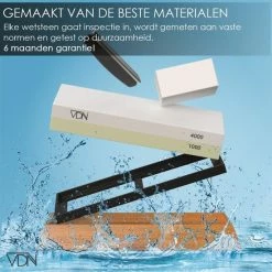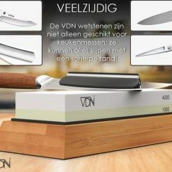DE UNIVERSELE WETSTEEN IS NIET ALLEEN GESCHIKT VOOR KEUKENMESSEN: De VDN-slijpsteen helpt u niet alleen om scherpere keukenmessen te krijgen. Gebruik het voor het slijpen van zakmessen, vleesmessen, beitel, tuinscharen, scheermesjes, schaatsen of andere messen. De slijpsteen is veelzijdig en kan gemakkelijk zowel binnenshuis en buitenshuis worden gebruikt.