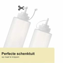 Dan bieden deze garneerflessen de ideale uitkomst! Bij het bakken van poffertjes is het lastig om de vormpjes te vullen met beslag zonder te knoeien. Deze beslagflessen zorgen dat je altijd de juiste dosering hebt voor het bakken van je poffertjes. De flessen zijn ook te gebruiken voor bijvoorbeeld het doseren van je dressing, voor (chocolade)saus of om je bord net wat mooier op te maken.