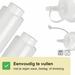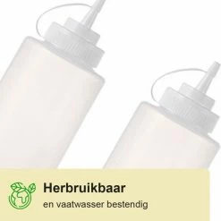 Normaal gesproken gooi je een sausfles weg wanneer deze op is. Deze garneerflessen zijn vaatwasser bestendig en daardoor kun je deze keer op keer opnieuw gebruiken. Heb je de fles de ene week nodig voor het beslag van je poffertjes en daarna voor je eigen gemaakte saus? Geen probleem! Even in de vaatwasser en garneerfles is weer als nieuw.