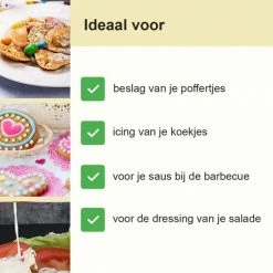 Wil je altijd de juiste dosering hebben voor je poffertjesbeslag, saus, icing of dressing?