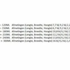 | Maat | 0.12 l, 0.15 l, 0.18 l, 240 ml, 270 ml, 300 ml, 210 ml |