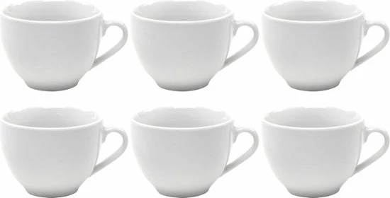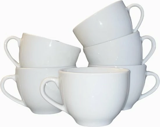 De set bestaat uit 6 koffiekopjes gemaakt van hoogwaardig porselein. Het kopje heeft een oor voor een comfortabele houvast. De inhoud van de mokken is 250ml. De kopjes zijn ideaal voor dagelijks gebruik en zijn geschikt voor zowel koffie als cappuccino. De kop is gemaakt van porselein en kan dus na gebruik prima gereinigd worden in de vaatwasmachine.