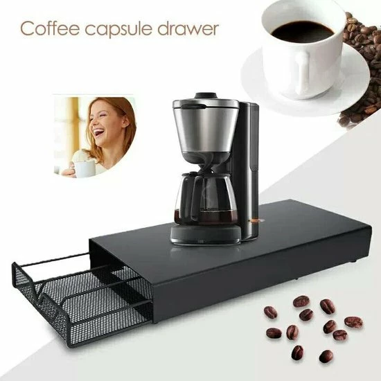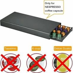 Merkloos TDR – Capsule Houder Met Lade – Geschikt Voor Nespresso En Compatible Capsules – Espresso Koffie Cups Houder – 40 Capsules – RVS – Zwart