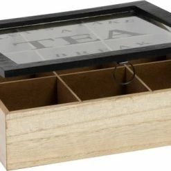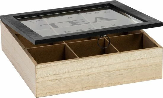 Theekist – Bruin – Hout 9-Vaks – Glazen Deksel – Theedoos – Tea Break