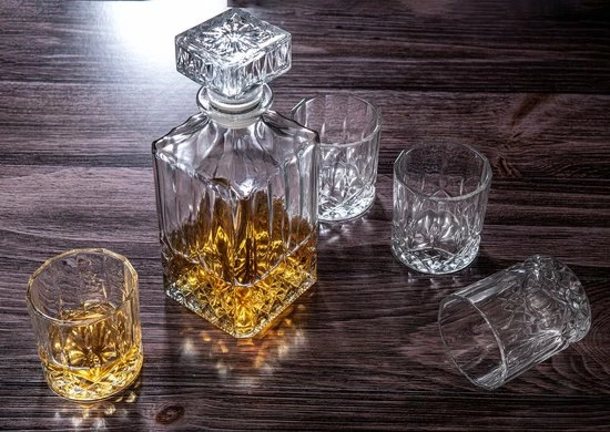 Elegante whiskey set met een karaf en 4 glazen geschikt voor elk feest of nieuwjaarsfeest.