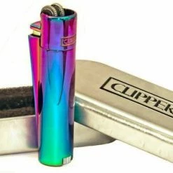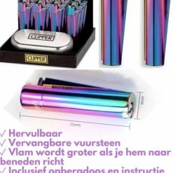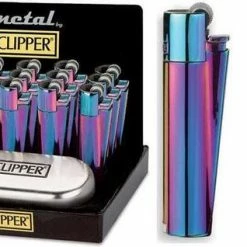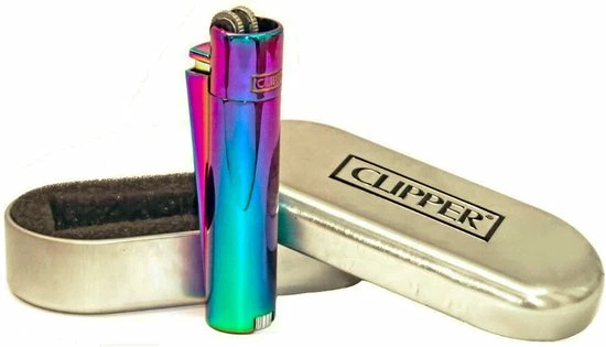 De klassieke metalen Clipper aansteker is nu verkrijgbaar in speciale editie met Icy – Multi Color afwerking. Deze versie heeft een regelbare vlam en beschikt over een vuursteenontsteking. De Clipper zit in een luxe clipper doosje en is afgewerkt met Clipper logo. De aansteker beschikt over een vuursteentje wat eruit kan.